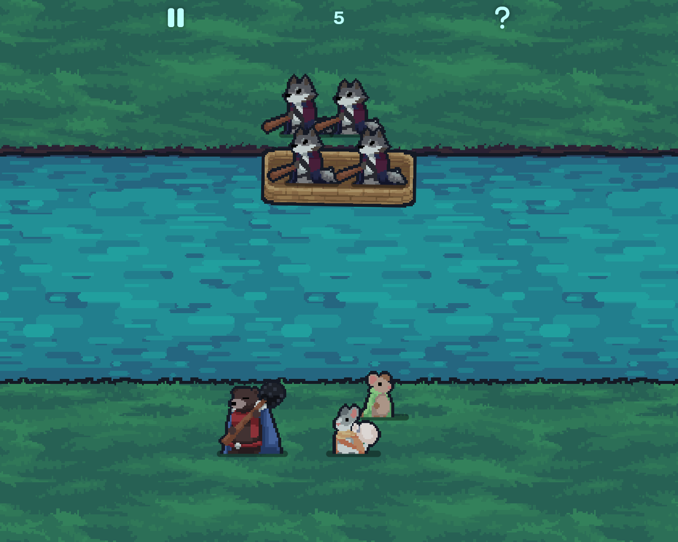 The Riverpaws, a group of animals on a supply run, need to cross the river. To complete their mission, they must strategize around their natural instincts to safely get everyone across. Can you help them ?